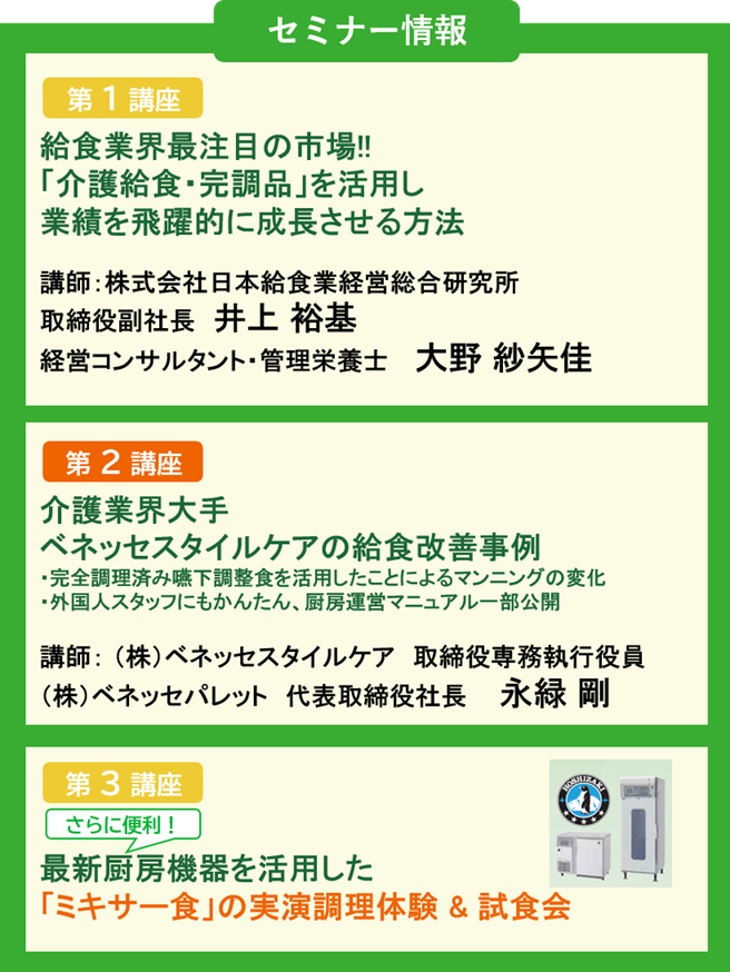 本セミナーでは、「完全調理済み嚥下調整食(形態食)」を活用した